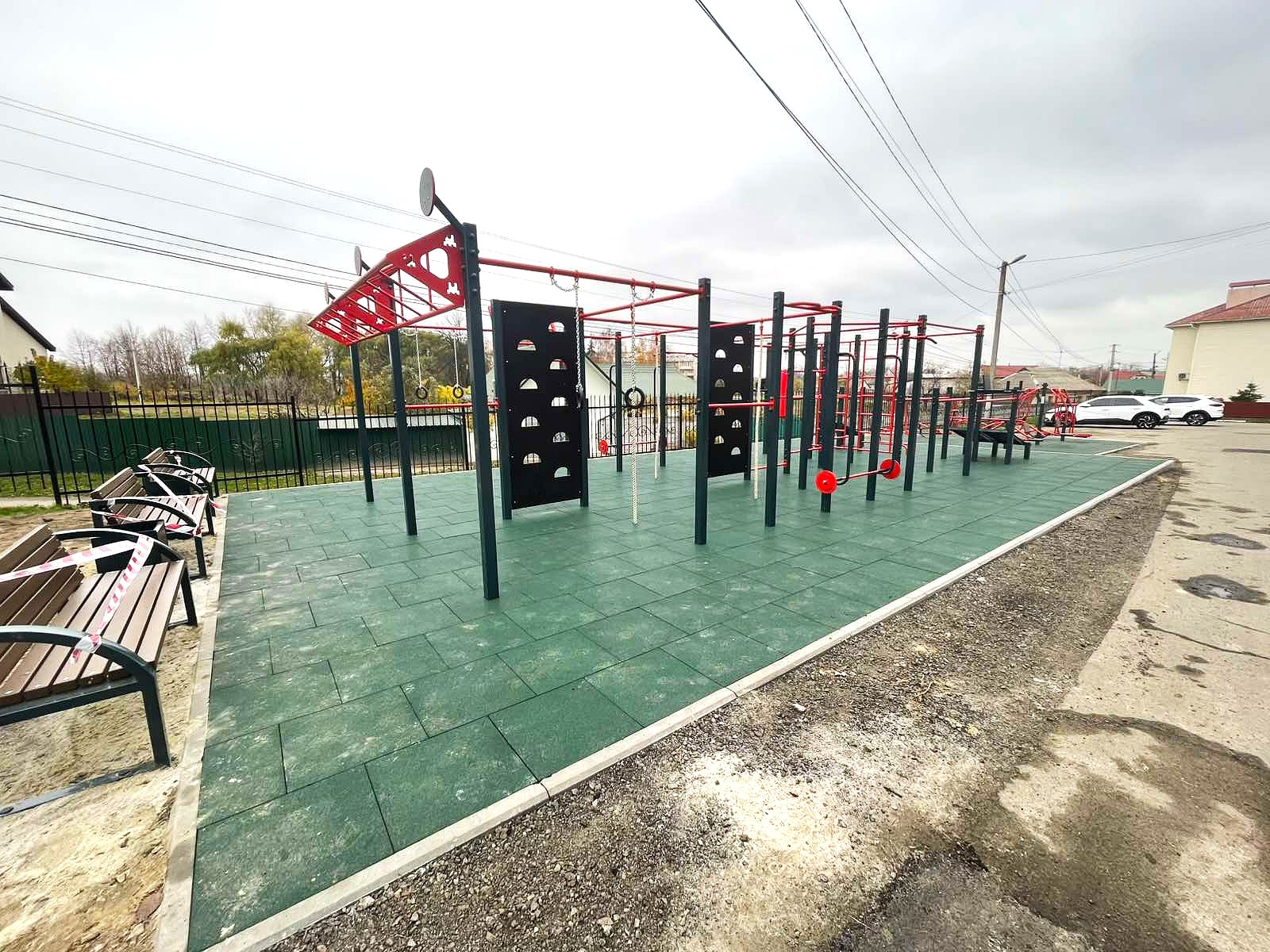 Спортивний майданчик оснащений елементами воркауту та сучасними вуличними тренажерами, які дозволяють проводити силові, кардіо тренування на відкритому повітрі для різних груп м’язів.